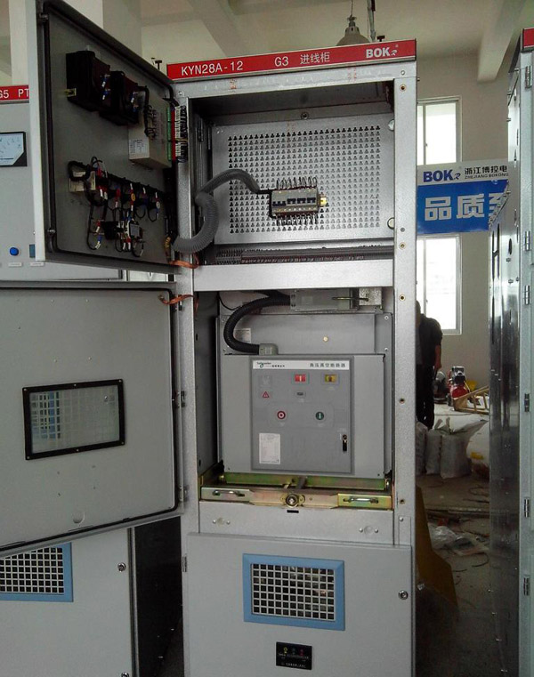 KYN28(GZS)型戶內(nèi)金屬鎧裝抽出式開關(guān)設(shè)備(以下簡稱開關(guān)設(shè)備)。該開關(guān)設(shè)備系3-10KV三相交流50Hz單母線分段系統(tǒng)的成套配電裝置。主要用于發(fā)電廠、中小型發(fā)電機送電、工礦企事業(yè)配電以及電業(yè)系統(tǒng)的二次變電所的受電、送電及大型高壓電動機起動等,實行控制保護、監(jiān)測之用。具有防止帶負荷推拉斷路器手車、防止誤分合斷路器、防止接地開關(guān)處在閉合位置時關(guān)合斷路器、防止誤入帶電隔室、防止在帶電時誤合接地開關(guān)的聯(lián)鎖功能,既可配用VS1真空斷路器,也可配用ABB公司的VD4真空斷路器,是一種性能優(yōu)越的配電裝置。