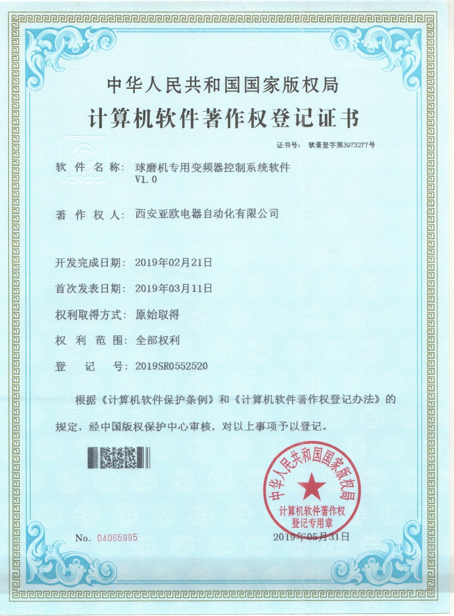 - 關(guān)于我們 - 資質(zhì)榮譽(yù) - 球磨機(jī)專(zhuān)用變頻器軟件著作