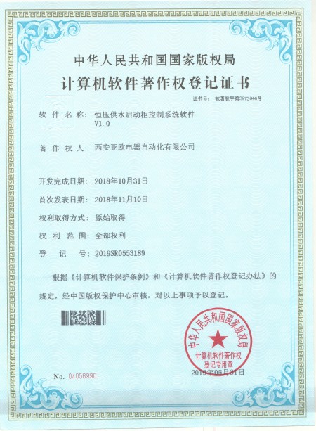 - 關(guān)于我們 - 資質(zhì)榮譽(yù) - 恒壓供水啟動(dòng)柜控制系統(tǒng)軟件